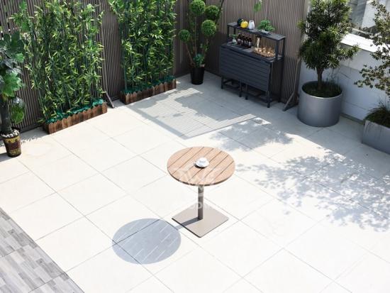 La forma redonda de la mesa fomenta la intimidad, lo que la hace ideal para reuniones, ya sea un brunch de fin de semana o una cena informal. Su generoso tamaño permite acomodar cómodamente a varios comensales, lo que fomenta la conversación y la conexión. Además, su diseño de listones permite el drenaje del agua, lo que garantiza su durabilidad y funcionalidad en diversas condiciones climáticas.