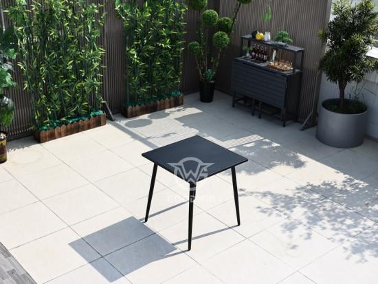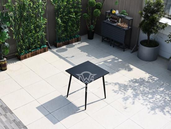 El mesa de comedor de marco de aluminio encarna la esencia de la elegancia y el minimalismo, por lo que es una adición versátil a cualquier espacio al aire libre.